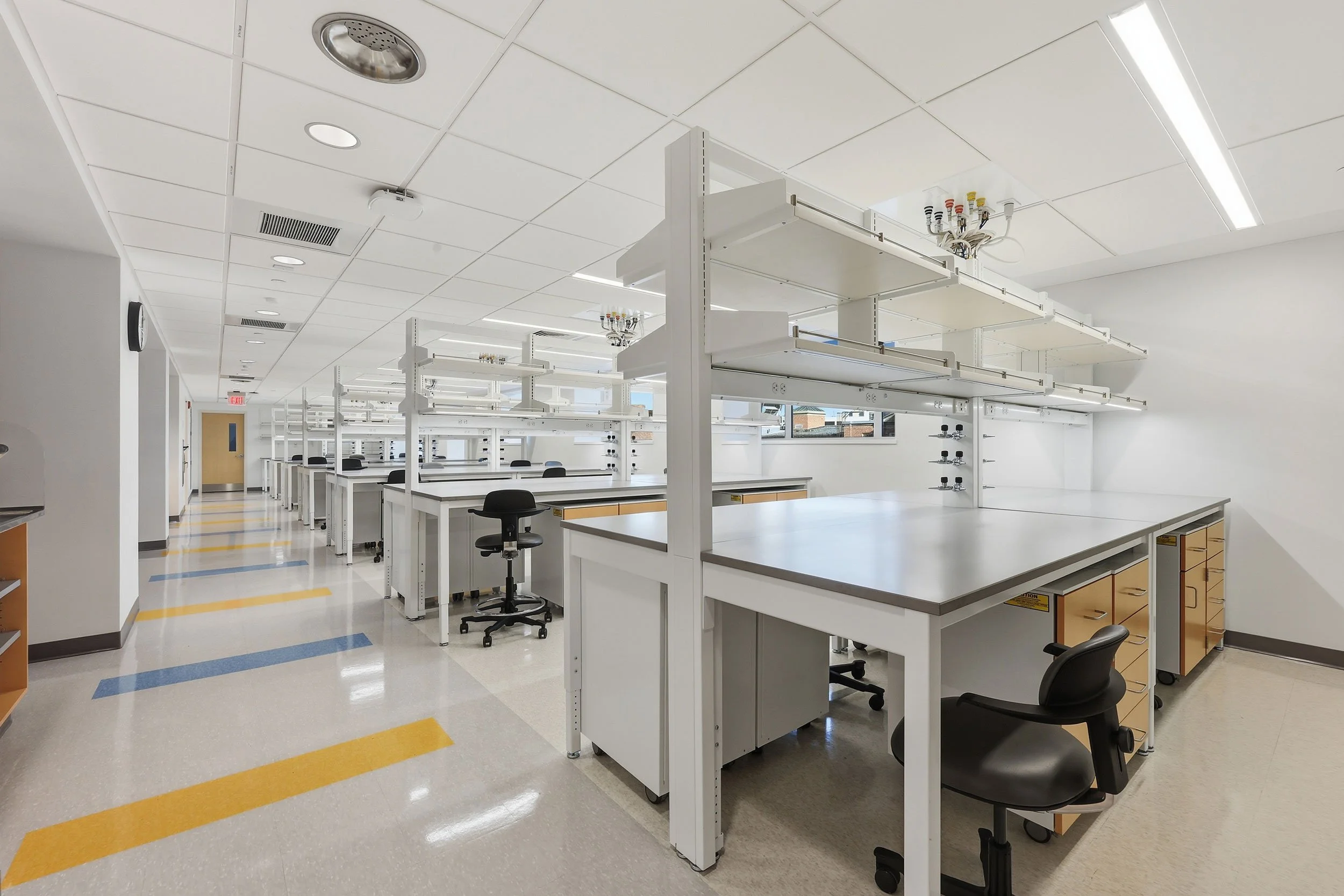 The Farnam Memorial Building 4th Floor Laboratory Renovation was a comprehensive upgrade of approximately 9,000 square feet, combining a full lab fit-out with major building infrastructure improvements. The project transformed the fourth floor into advanced laboratory, office, and support spaces, supported by extensive HVAC and mechanical system upgrades, new windows, masonry repairs, and custom millwork. Significant roof-level work included replacement of aging air handling units and installation of new rooftop systems, all while the building remained occupied. Careful phasing and coordination allowed operations to continue throughout construction. The project was completed more than one month ahead of schedule and under budget, delivering a modern, efficient laboratory environment with long-term value.